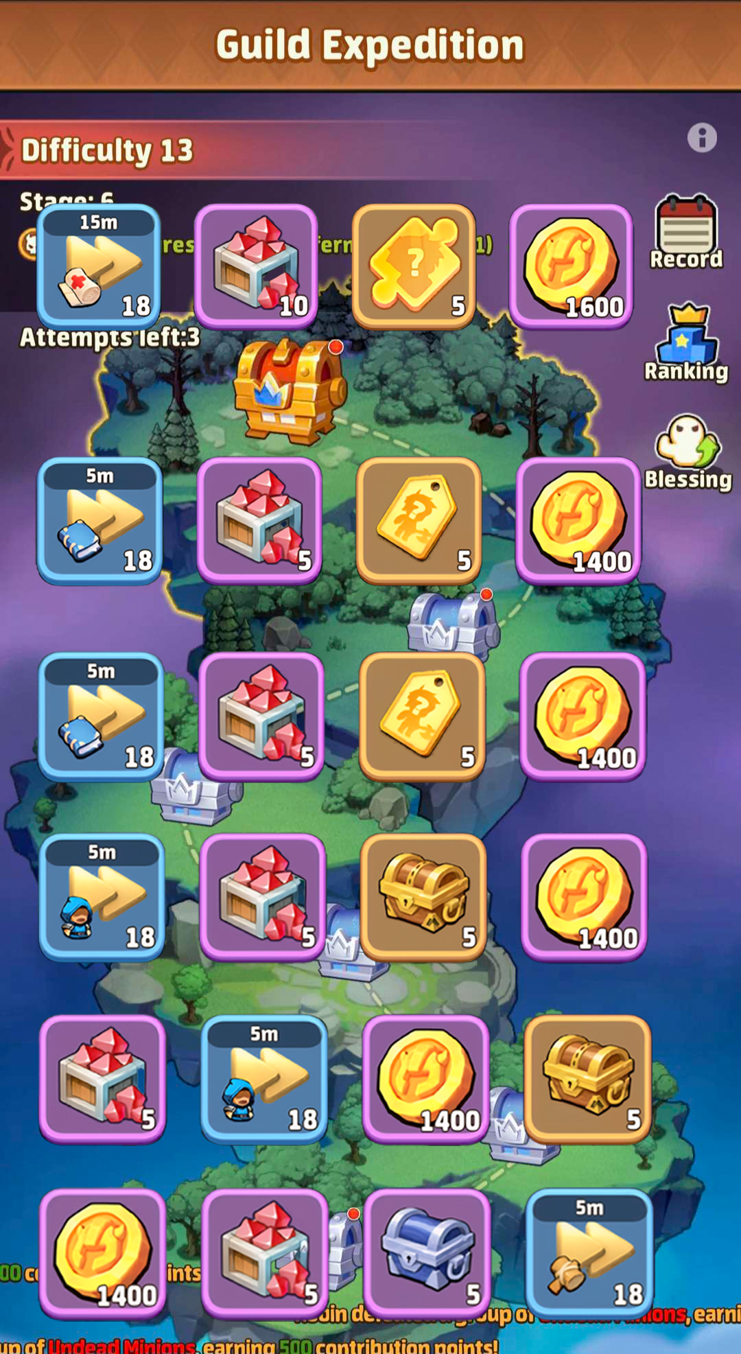 This weekly event begins every monday. Use all your attempts to fight the monsters and the bosses and win 6 chests at least(even when you don’t fight^^).