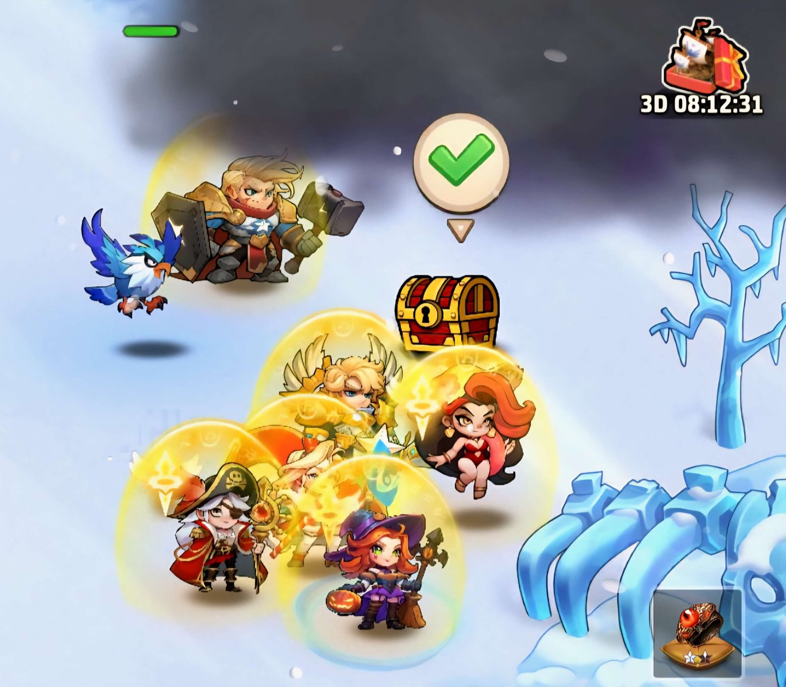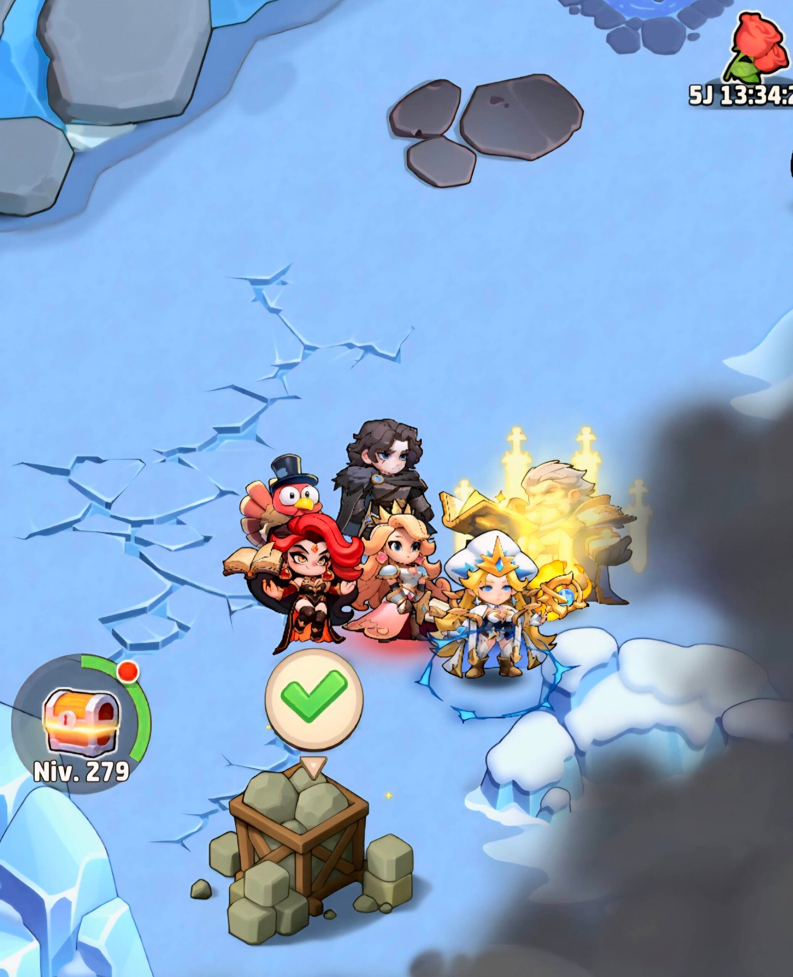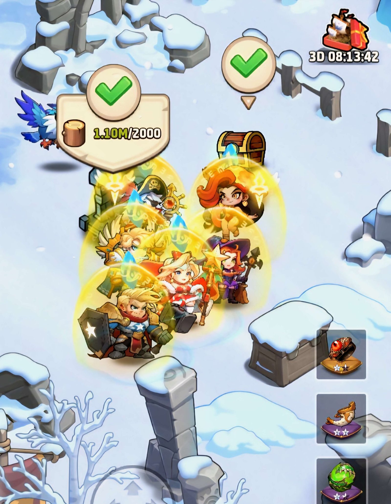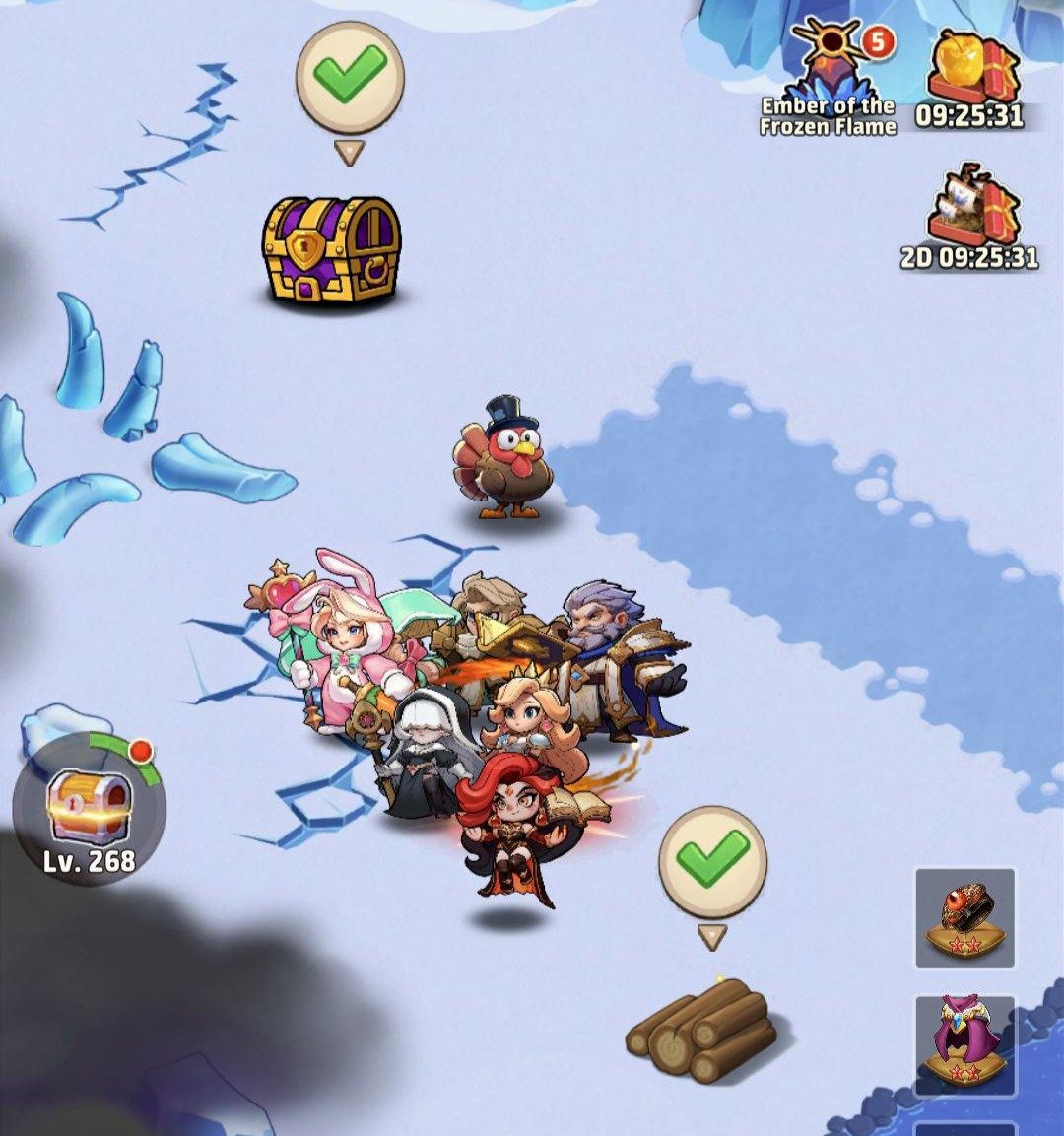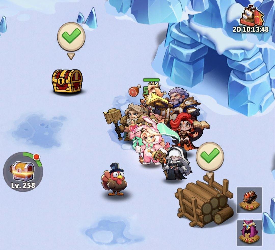 - You can farm the bosses to win interesting items like hero shards, dragon essences, universal tickets, golden and silver chests, 100 gems, hero gears (gold and purple)….