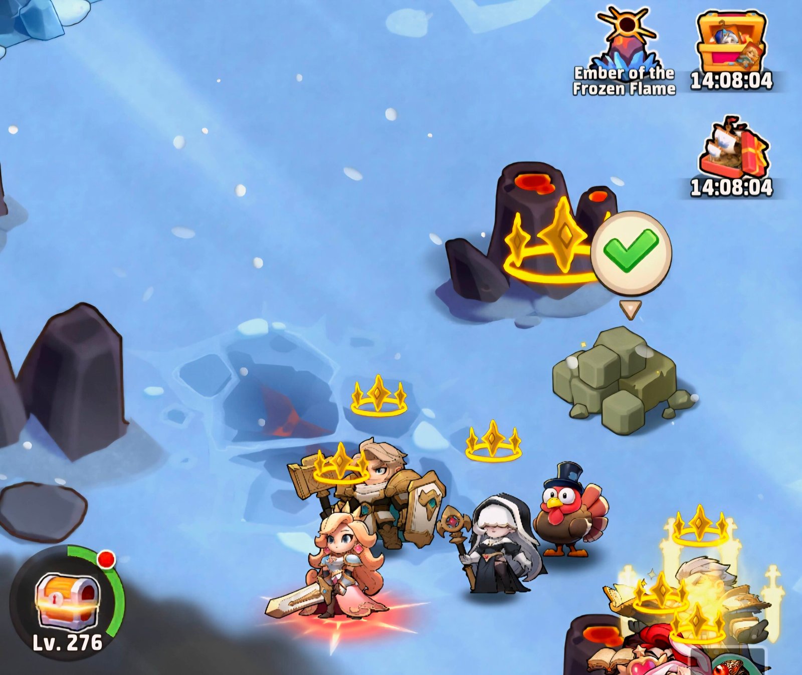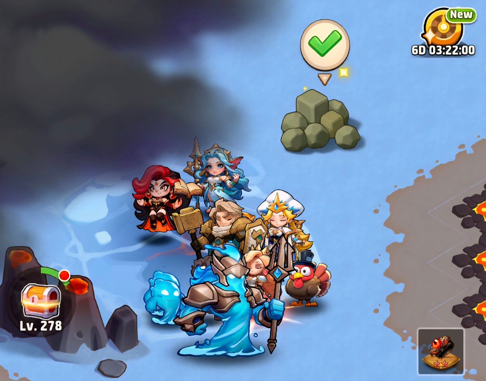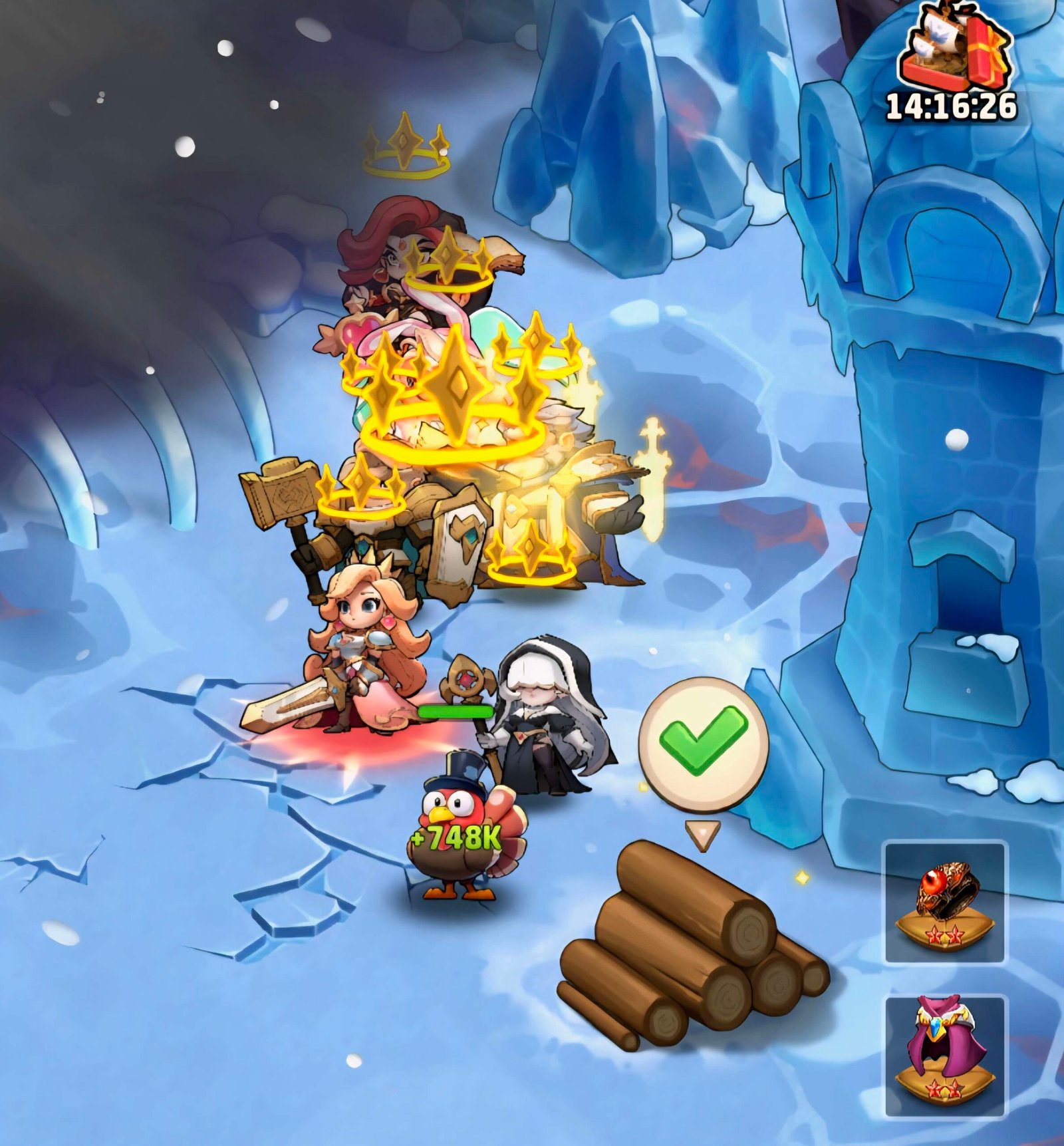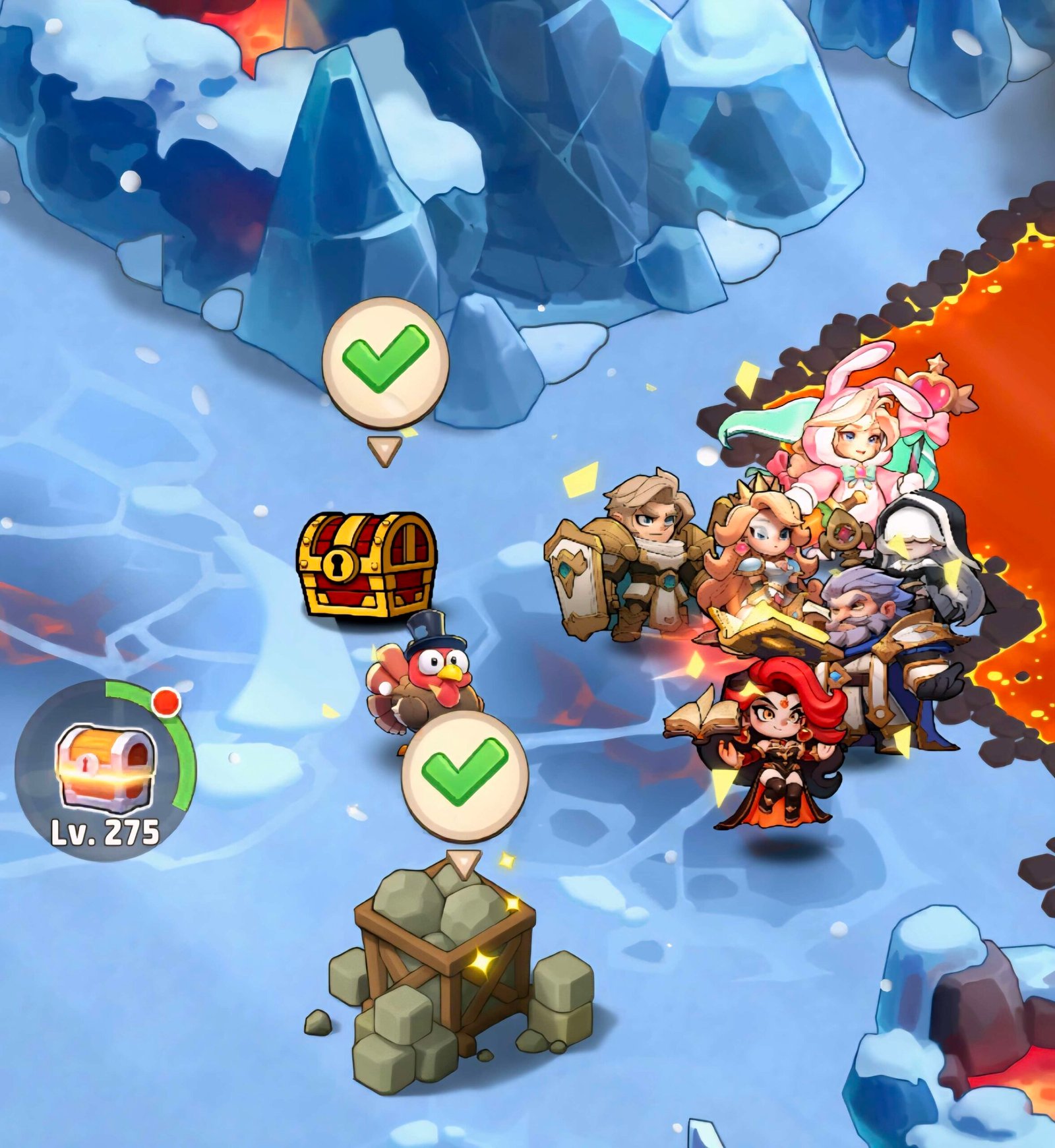 - You can farm the bosses to win interesting items like hero shards, dragon essences, universal tickets, golden and silver chests, 100 gems, hero gears (gold and purple)….