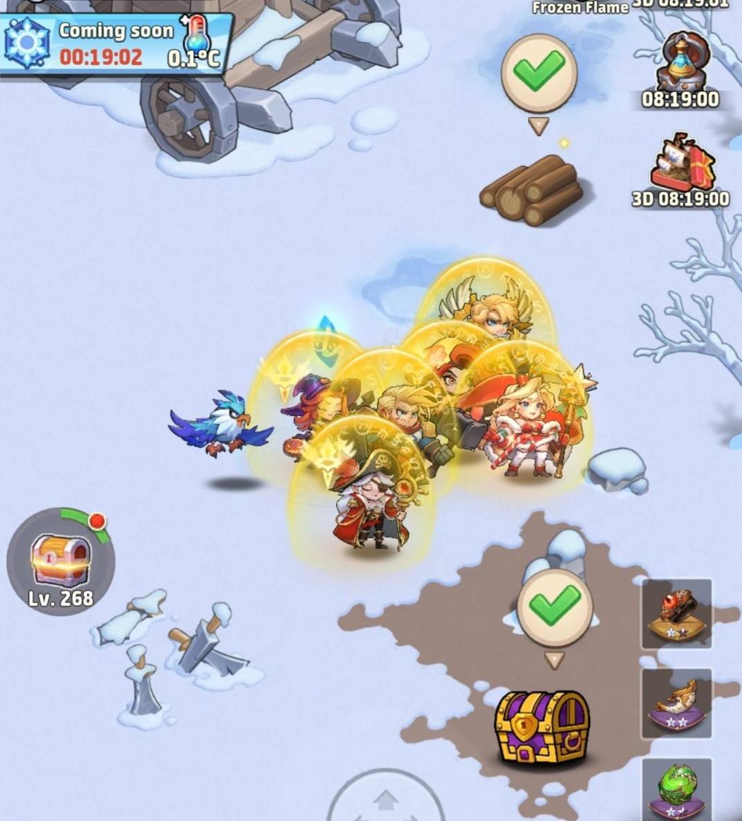 - When you have some issues to kill monsters or boss, you need to upgrade your furnace to up your temperature and damages %.