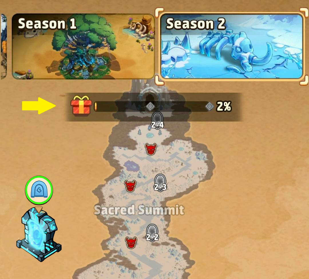 - On the map, click on the S2 world and the little red chest on the progress bar